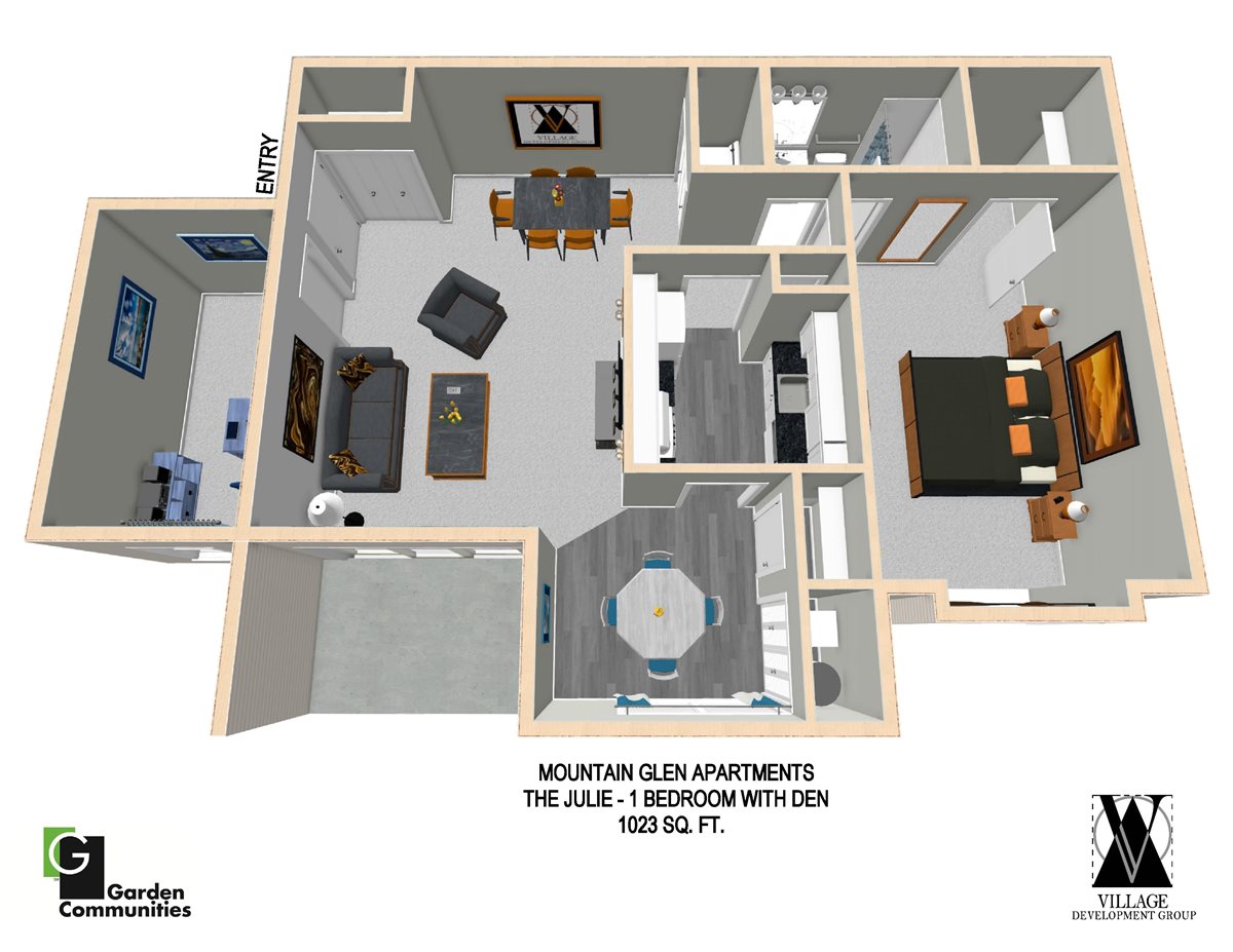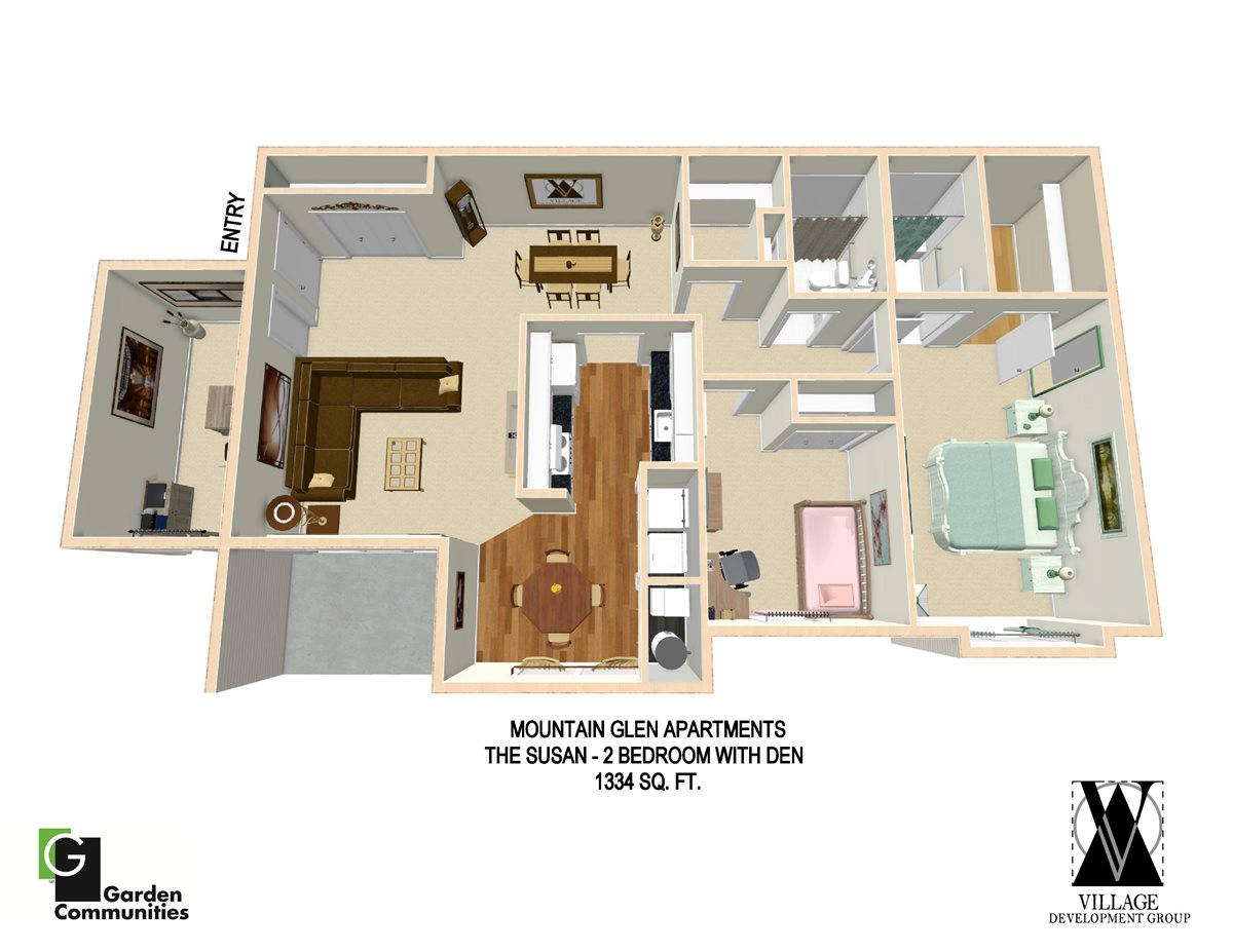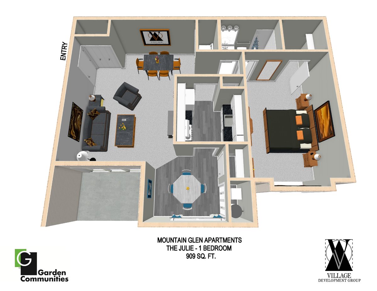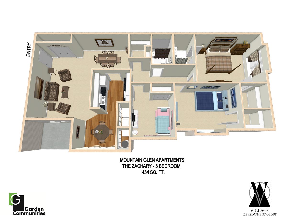 Explore the spacious rooms at Mountain Glen Apartments. Stretch out and relax in the large living and dining rooms. Light and airy eat-in kitchens are featured in every apartment home. A variety of one, two and three bedroom floor plans provide comfortable living for everyone. Roomy walk in closets and interior storage area maximize space in each residence.