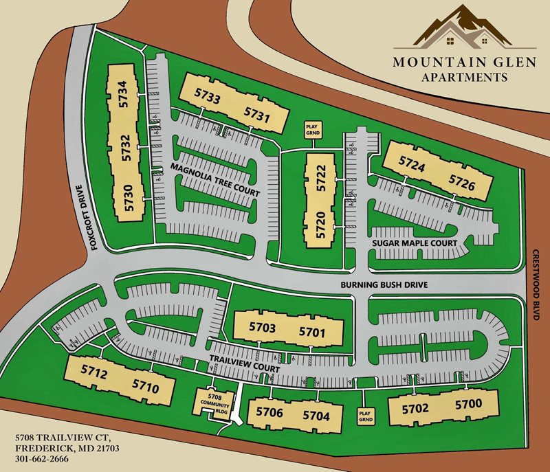 Mountain Glen's beautiful clubhouse offers modern exercise facilities. Walkways provide easy access to swimming and tennis. An added convenience is the close proximity to all major shopping malls and Frederick's downtown historic district.